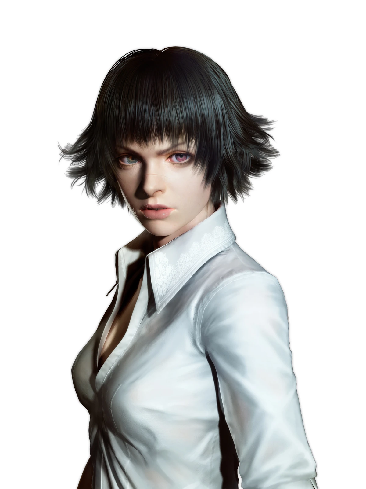 Not long ago, a few weeks at most, I was cleaning up my office and arranging my books. I have pretty healthy DMC section and while moving them I opened one to a random page with interviews from the developers. In that random passage I flip to the developer was talking about how Lady was a character who had abandoned her femininity in DMC3 and in that moment something struck because suddenly some things made perfect sense to me. I made a connection and I realized something that now feels rather obvious: She cut off her own hair.